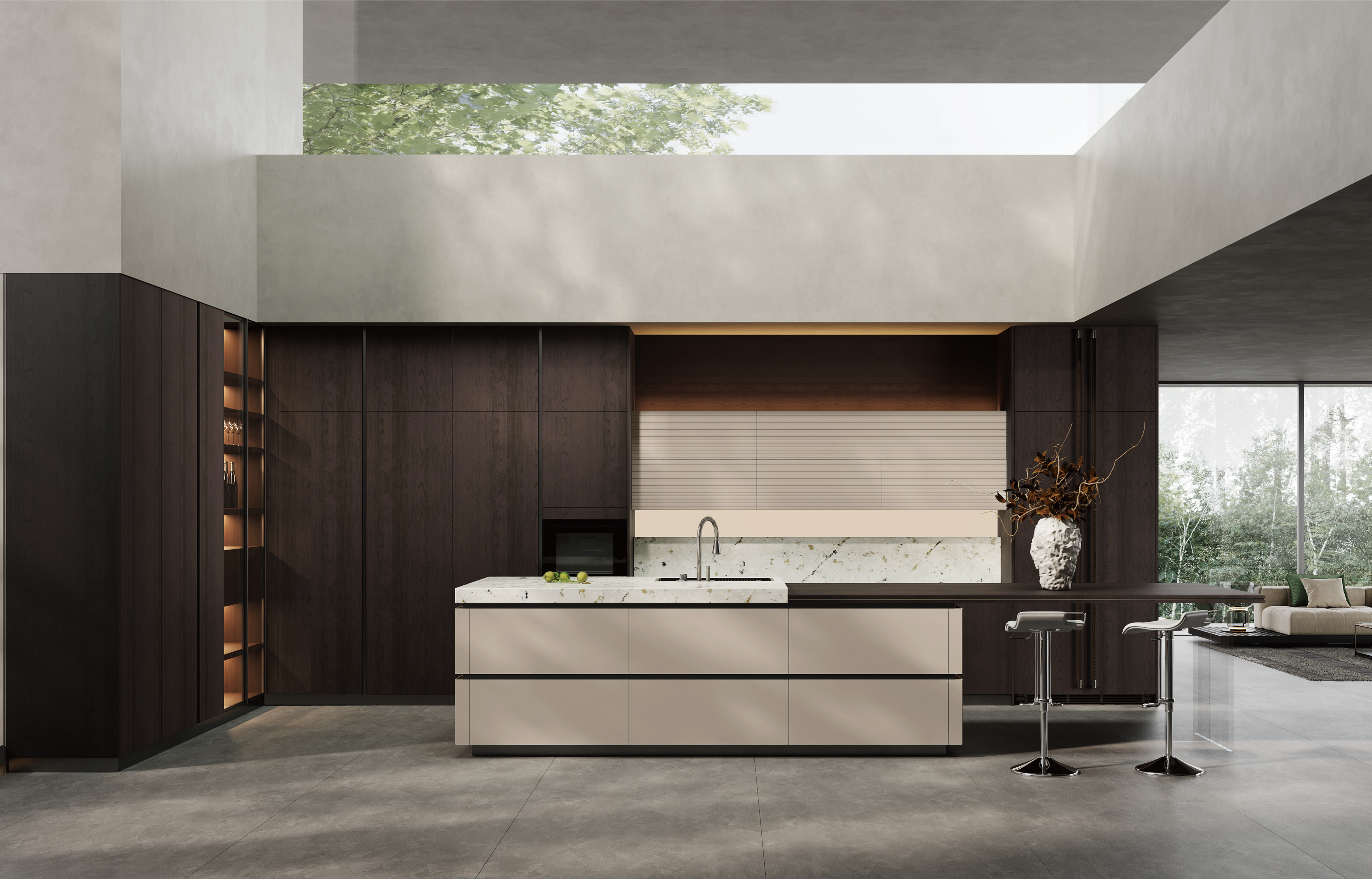 通过德晋贵宾厅厨柜量体裁柜,定制出适合主厨下厨的烹饪区和洗涤区的舒适高度。